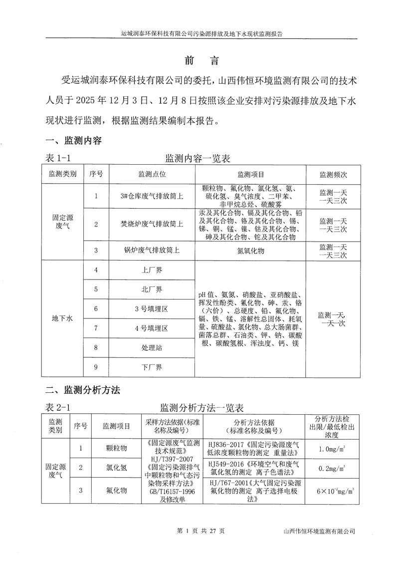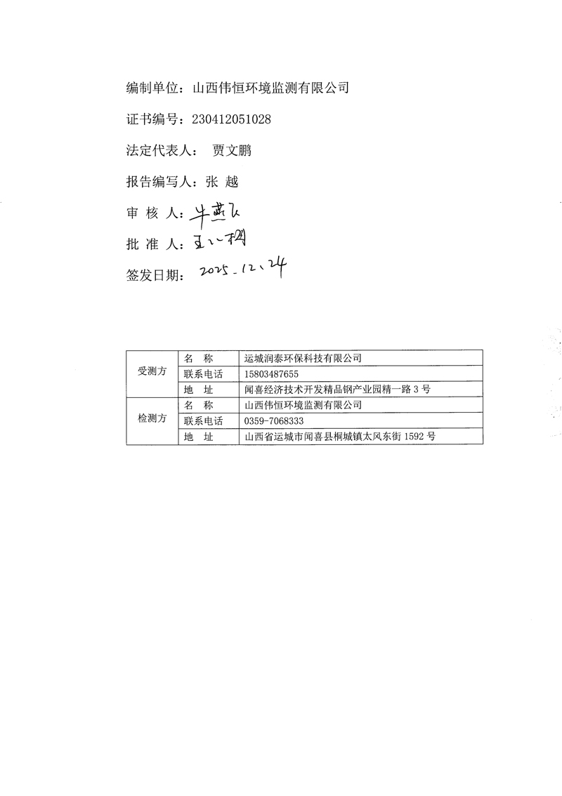 2025年潤泰環(huán)保十二月份自行監(jiān)測報(bào)告